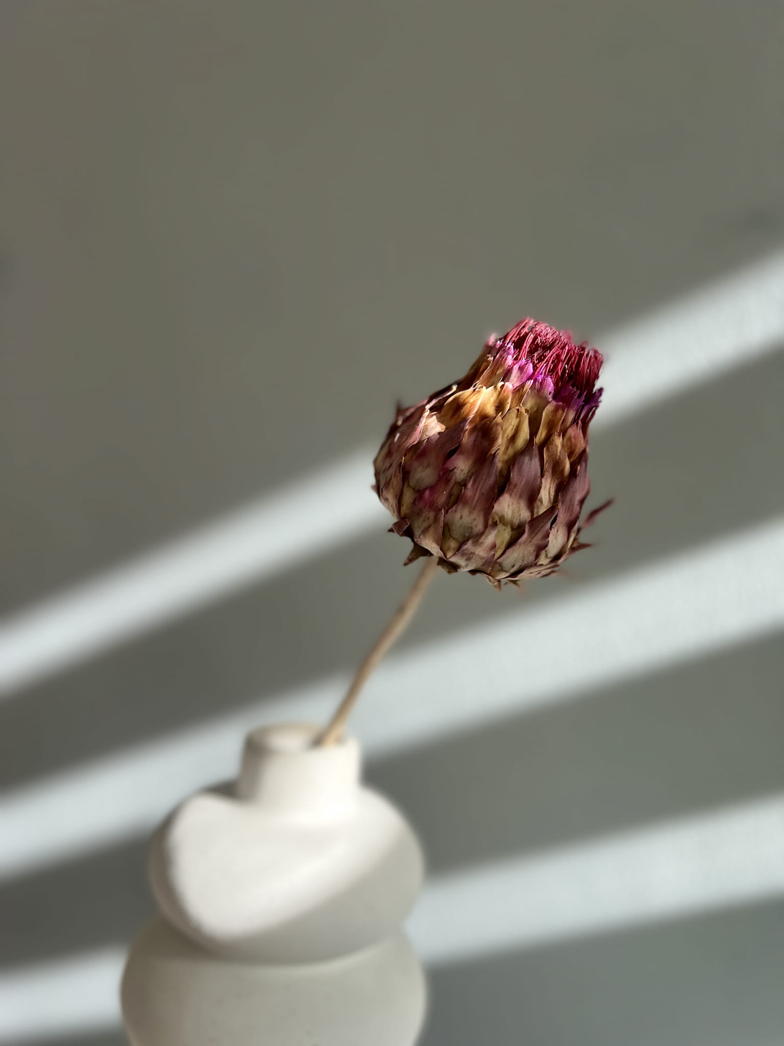 Suszony karczoch w małej wersji w naturalnym kolorze. Kwiaty o sztywnych liściach ułożonych w rozetę, które tworzą kwiatowy koszyczek. Dzięki swoim oryginalnym wyglądzie może nadać kompozycji egzotycznego wyglądu. Idealnie sprawdzi się do nie wielkich wazonów nawet jako samodzielna dekoracja lub na przykład z dodatkiem traw. Bardzo trwała roślina, więc może być dekoracją na długie lata.